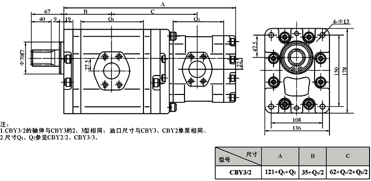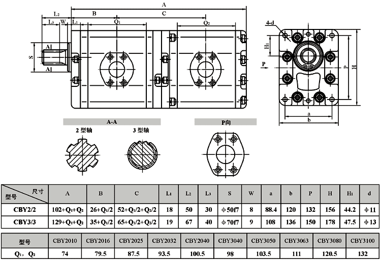 注:串聯泵的其餘安裝連接尺寸與單泵相同。