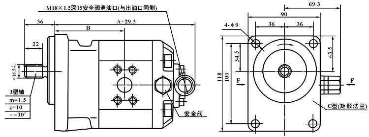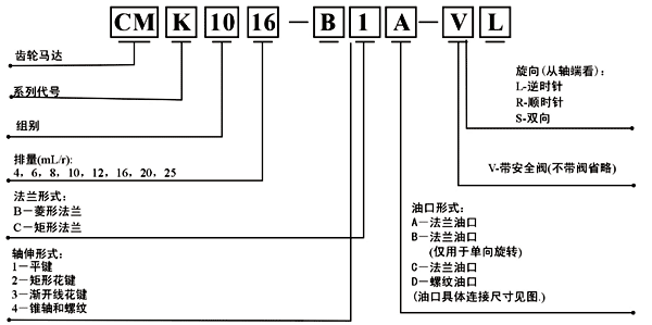 CMK1係列齒輪馬達可單向旋轉,也可雙向旋轉,單向旋轉時還可以帶安全閥,供用戶任意選用。