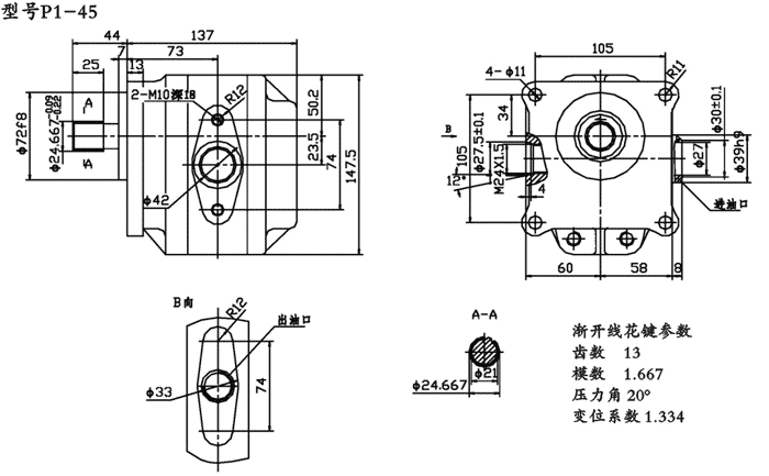 P1-45變速齒輪油泵是一種低壓泵,具有體積小,重量輕,噪音低,結構簡單,工作可靠等特點,主要應用於上海彭浦推土機變速係統。