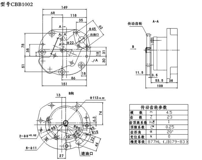 P1-45變速齒輪泵、P2-100轉向齒輪泵、CBB1002潤滑泵