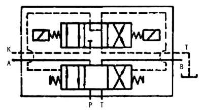用途與特征: 電液換向閥是由電磁換向閥和液動換向閥組合而成。電磁換向閥起先導控製作用,使液動滑閥換向進行油路卸載、順序動作以改變油流方向等來控製液壓係統中的執行元件的運作(如油缸的往返、油馬達的回轉等),起到與單獨的電磁換向閥相同的作用。 電液換向閥是用較小的電磁先導閥來控製大流量的液動換向閥來換向,在需要流量較大的自動化液壓係統中得到廣泛采用。 電液換向閥圖形符號: 型號說明: