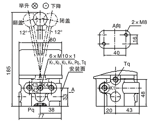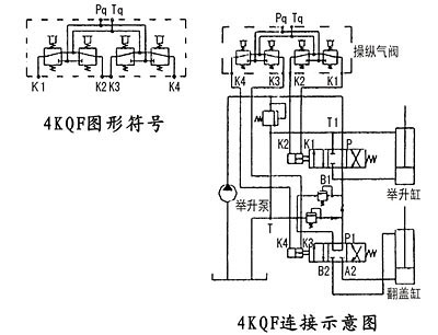 用途與特征: 4KQFxingcaozongqifashiyizhongzhengtishiduoluqikongcaozongqifa。bandongshoubingkezaisigegebutongjiaodufenbiekongzhiduolufagongzuo。juyouqizhongliangqing,tijixiao,duihuanjingwuwuran, 靈敏度高得多等優點。是5噸位以上自卸汽車氣路控製的一種理想元件。 4KQF型操縱氣閥的原始位置Pq口與T口是封閉的,各控製口K與Tq口相通。搬動手柄可在四個不同角度。
