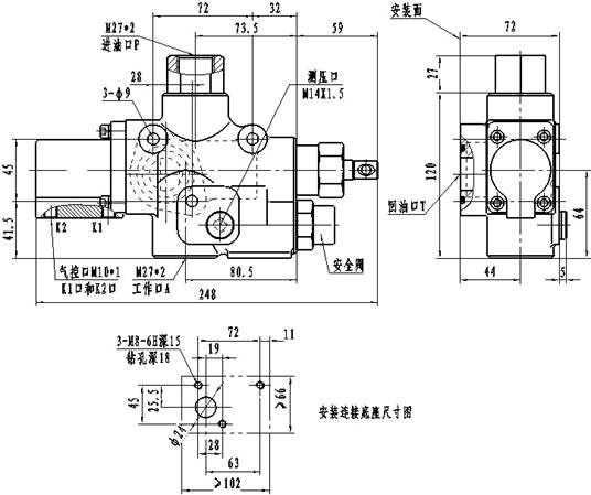 外形安裝聯接尺寸圖:
