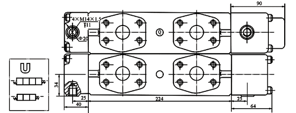 DC25多路換向閥液控操縱閥片有關尺寸: