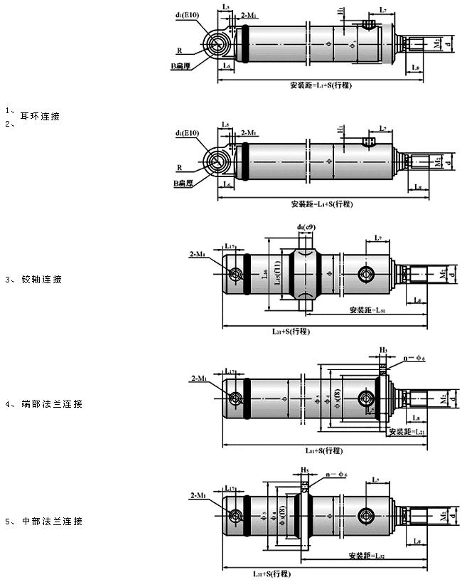 1.活塞杆端為外螺紋連接 :