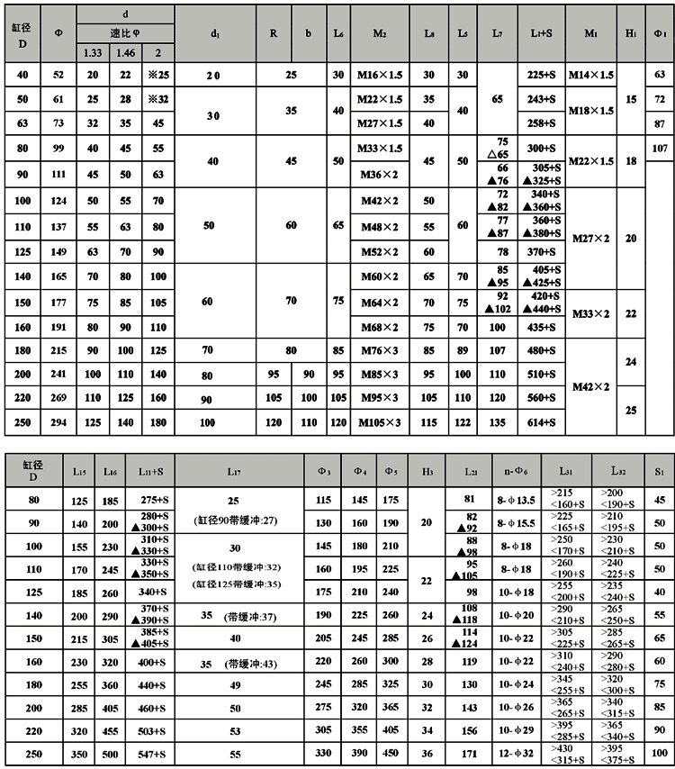 3、帶△者僅為ф80缸卡鍵式尺寸。