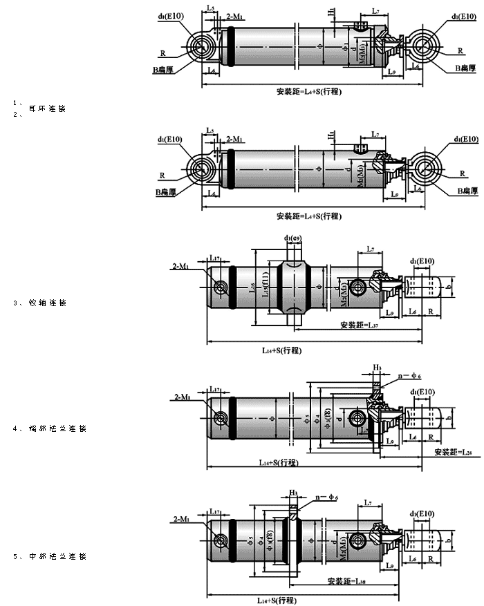 5、鉸軸連接的行程不得小於表中最小行程S1值。