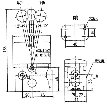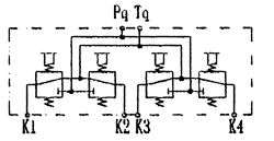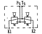 4(2)KQF型操縱氣閥的原始位置Pq口與T口是封閉的,各控製口K與TQ口相通。搬動手柄可在四個或二個不同角度。該閥的工作原理示意圖如下