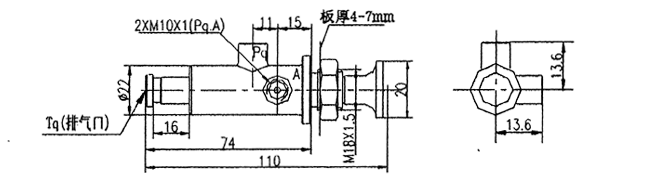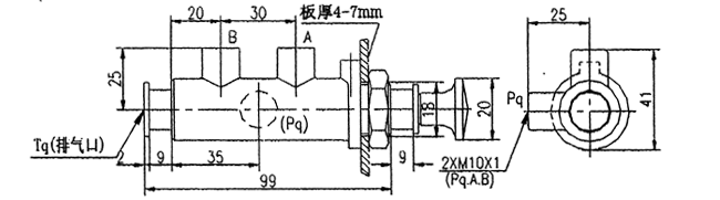 KQF23型操縱氣閥的原始位置Pq口與Tq口是封閉的,A口與Tq口相通。當把操縱氣閥的手柄拉出後,Pq口與A口連通去控製舉升閥氣缸,使液壓係統進入工作狀態。當把操縱氣閥的手柄推入後,切斷Pq口與A口的通路,舉升閥氣缸內壓縮空氣由該閥排入大氣,使液壓係統卸荷。該閥的工作原理示意圖如下A。
